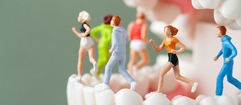日本オリンピック委員会は、1987(昭和62)年から強化指定選手の定期健診に歯科を組み入れるようになりました。そして大会前から歯科医療関係者によるサポートも行われています。むし歯がある選手は短期間で治療し、顎関節症の既往がある選手には、スプリント(マウスピース)と呼ばれる装置を入れて負担を減らします。また前述の咬合力と運動機能の研究を選手のパフォーマンス向上に役立てる取り組みも試みられています。